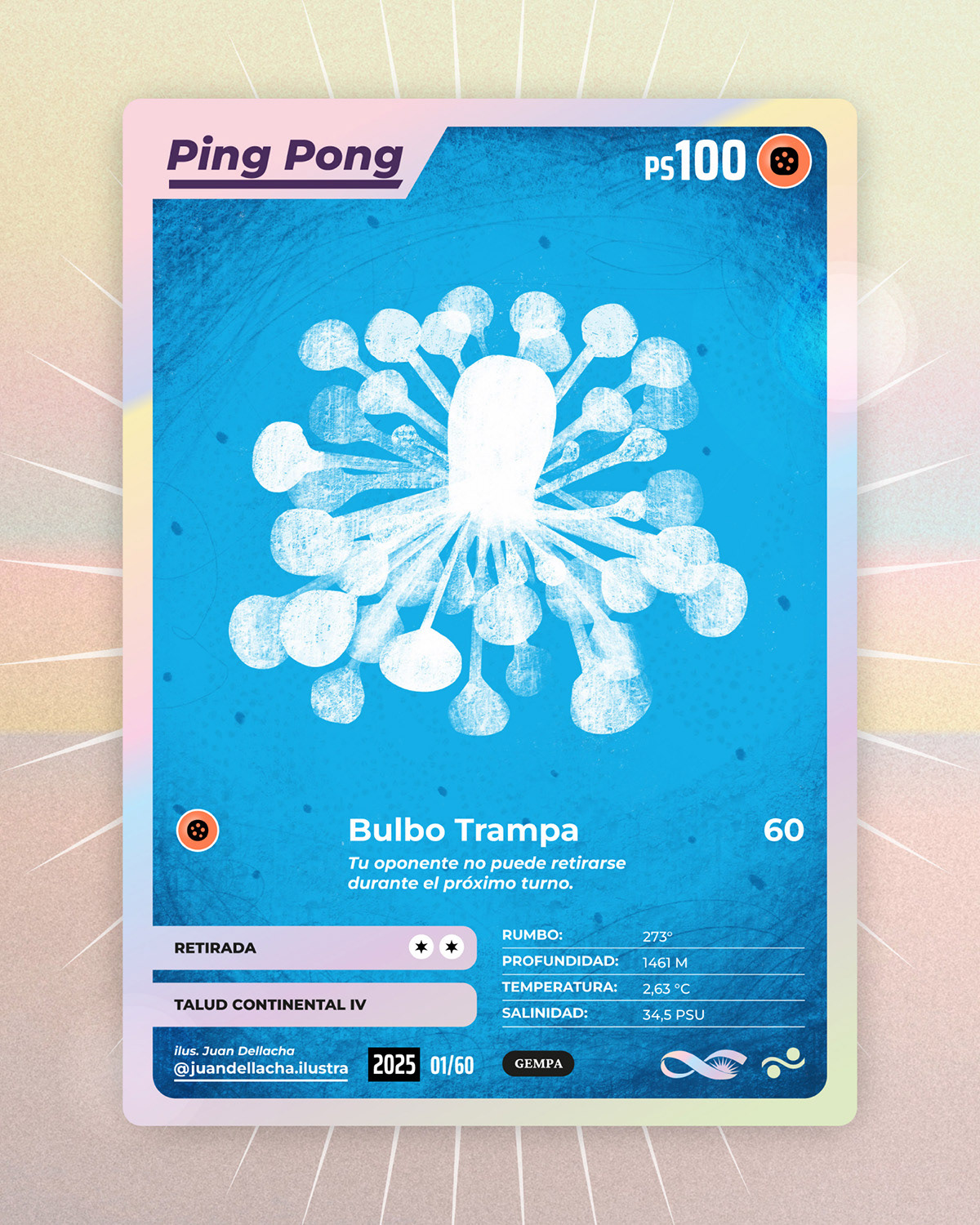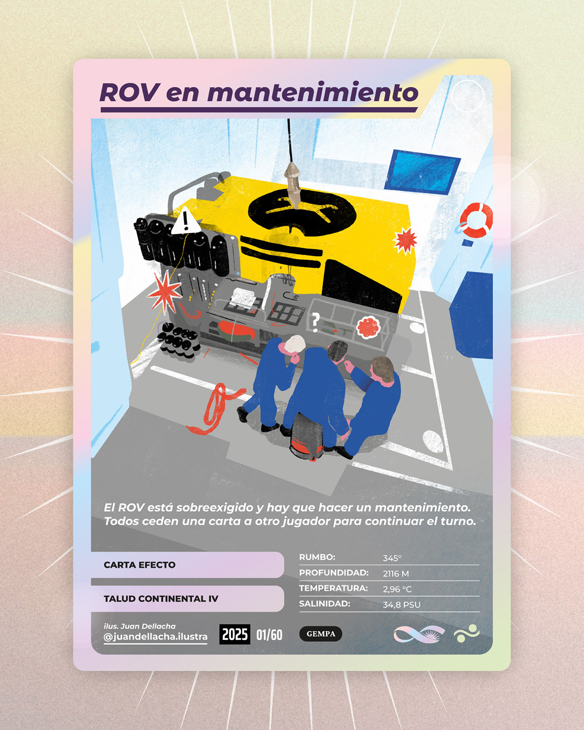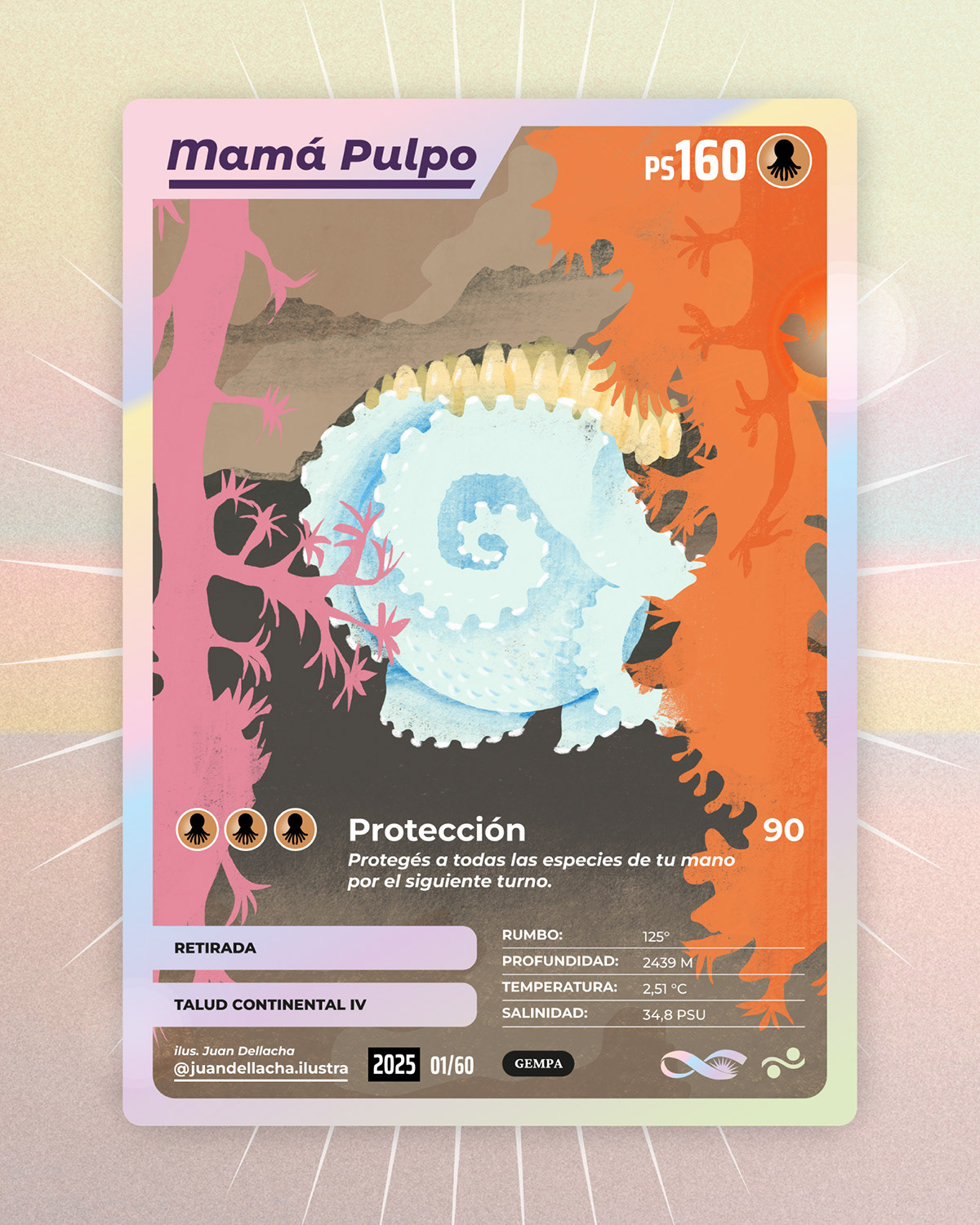 ENG. A set of illustrated cards inspired by the discoveries of the Talud Continental IV expedition in the Mar del Plata Submarine Canyon, a high-technology deep-sea exploration led by GEMPA, a research team from CONICET in Buenos Aires, Argentina.